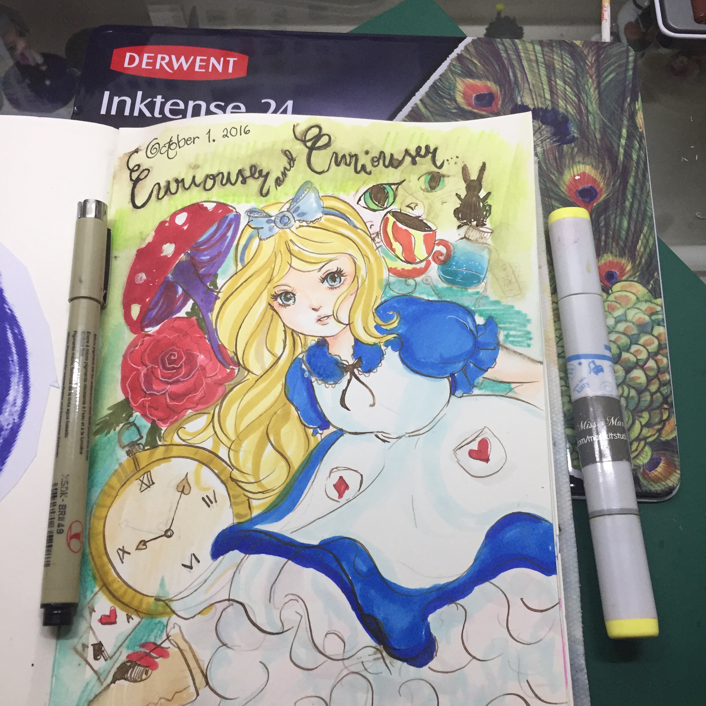 it is funny that on this day I have 3 art. Hagumi Hanamoto was a request from a friend, Legolas was for ink only practice and my entry today for my personal inktober prompt was Alice! :$ it starts!! inktober !! and i hope to finish !!