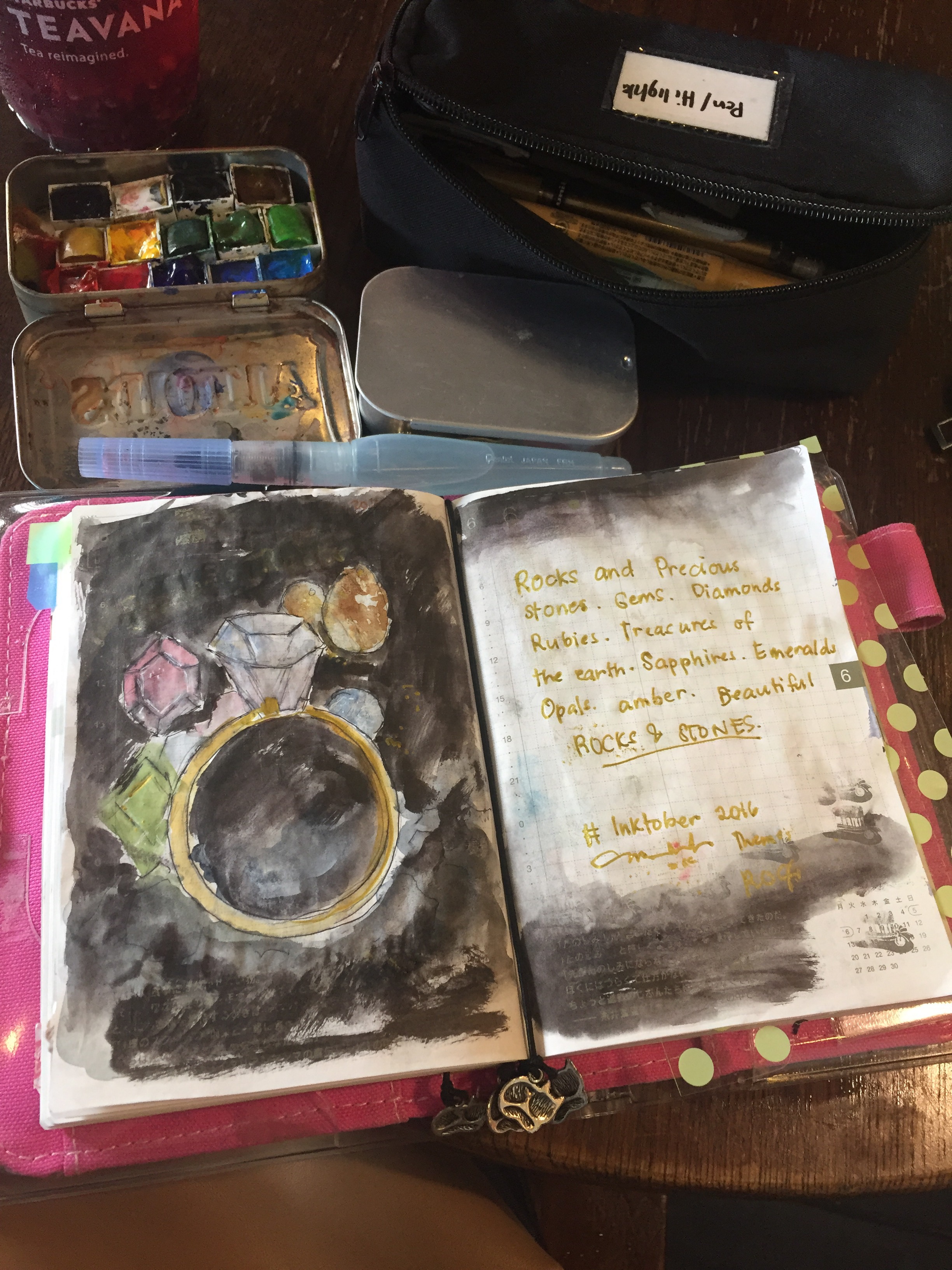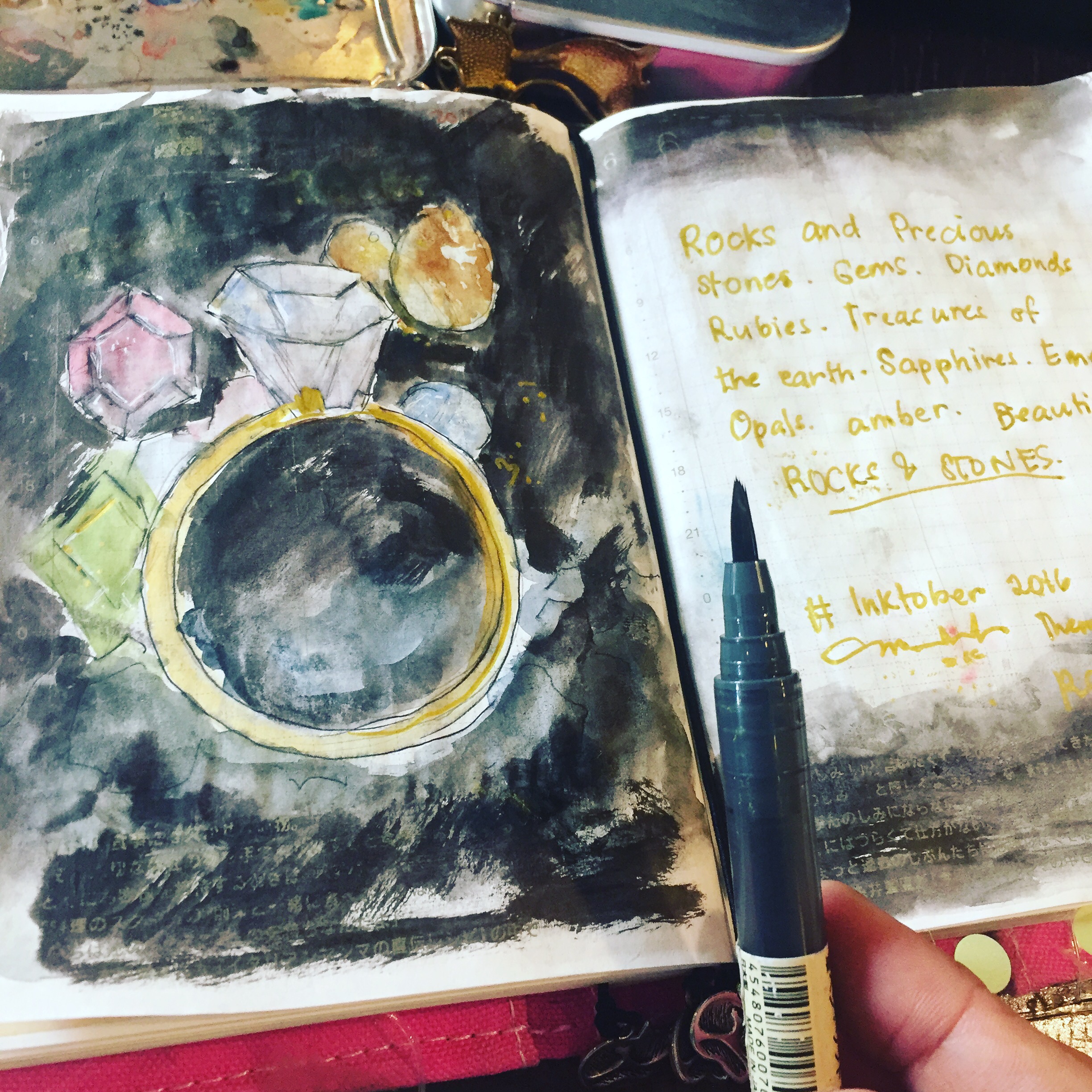 for inktober 8 i drew precious gems and stones for the Rock theme. all those dark parts are inked with a muji pen. it is water soluble:)