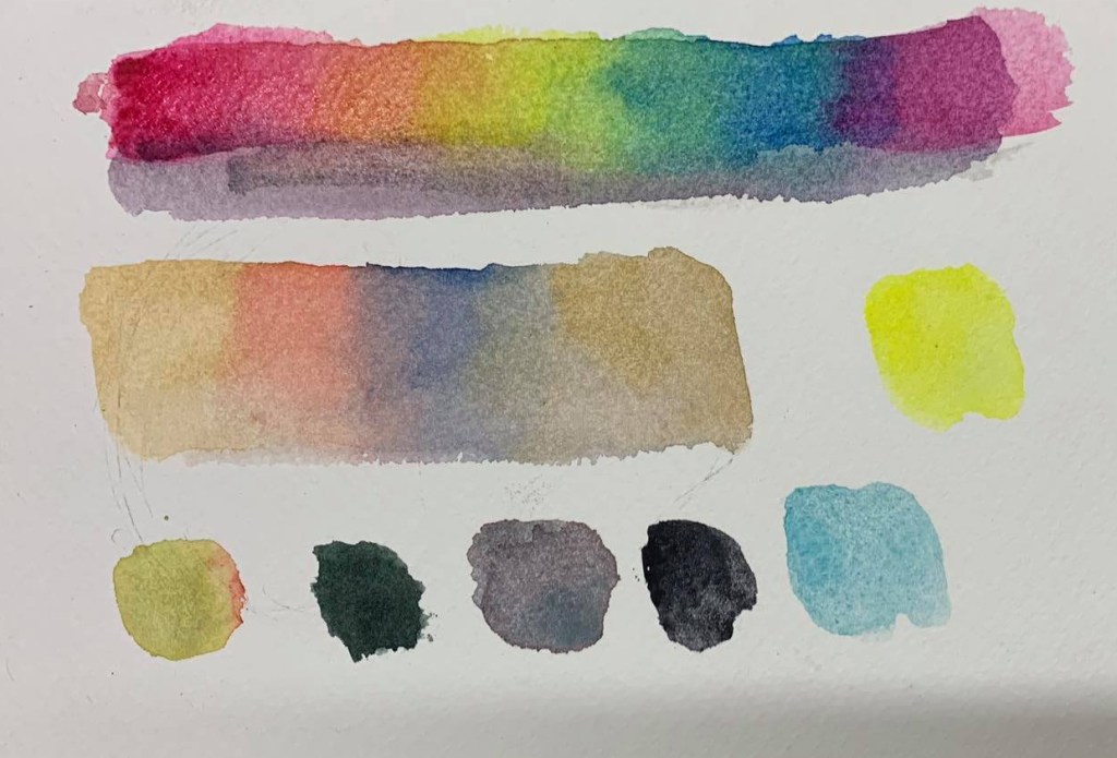 The rationale behind it is that if I can have both CMYK and Zorn, I could create any color I want without having to reach for other colors. I also want to learn how to mix my own colors more and push my learning of watercolors further.
