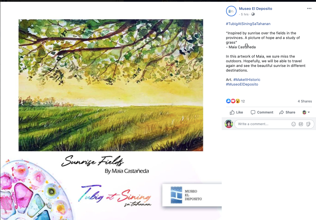 I cannot believe it. I MADE IT. I was going about my day and I got a PING on my Phone. I thought it was just some of my friends, but it was Museo El Deposito telling me that I am featured on their Facebook page. I am one of the 13 picked for the #TUBIGATSININGSATAHANAN Online Gallery Show and I was 2nd to be feature. I was so shocked that I almost cried.