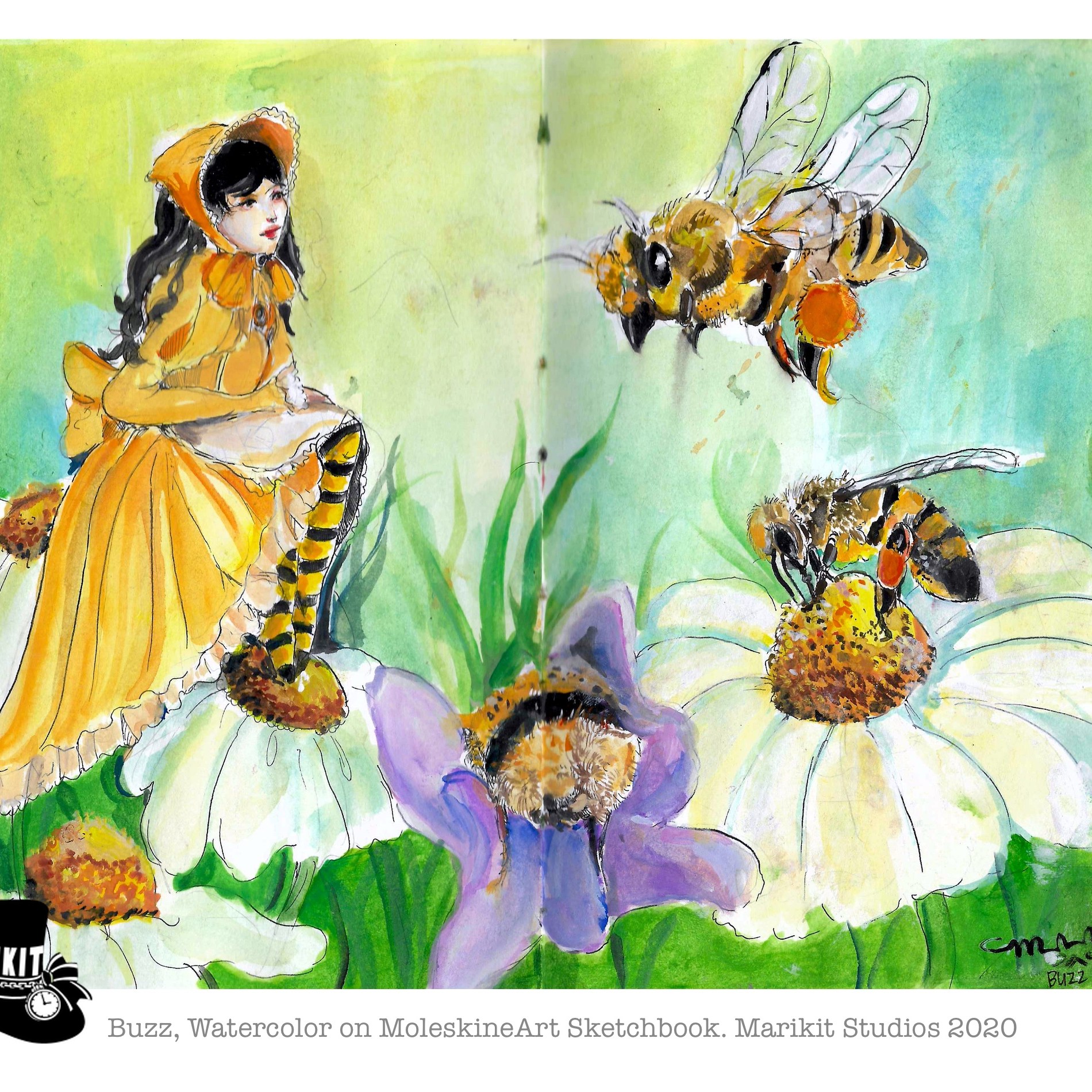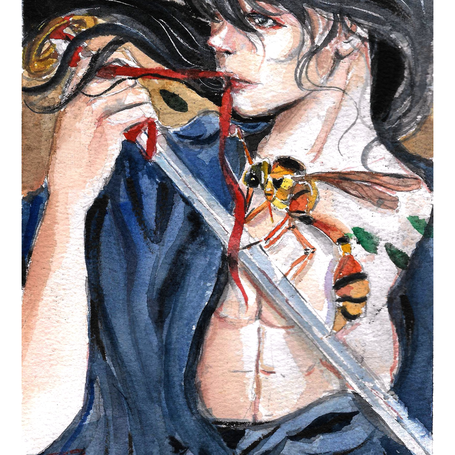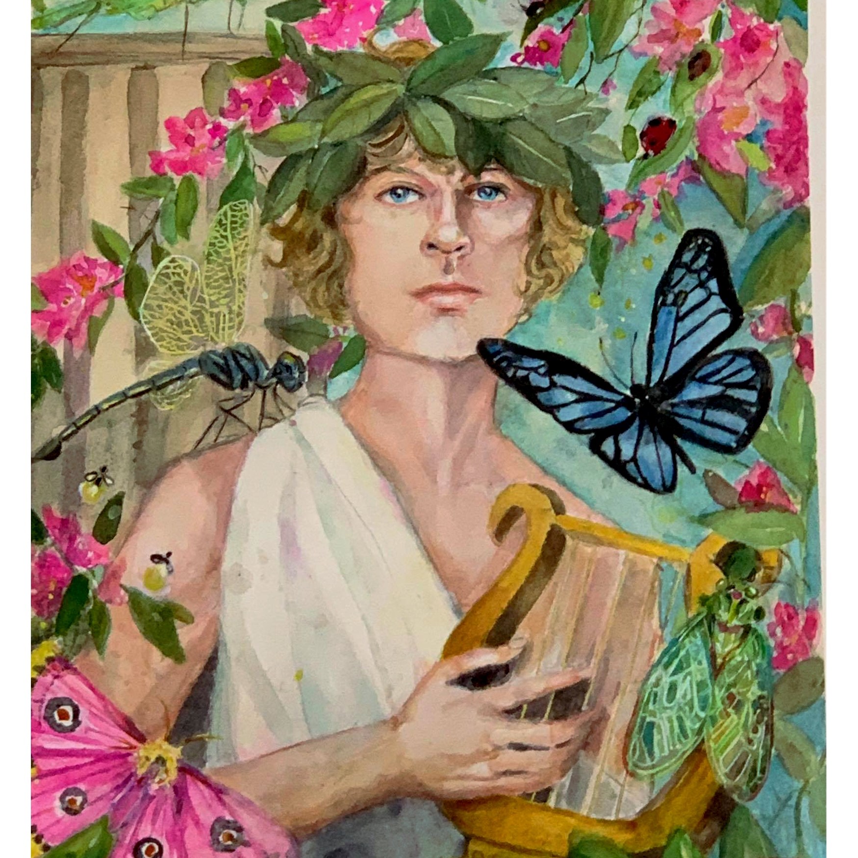 The project bloomed to become a marraige between bugs and an ethnic portrait study. I studied a lot of ethnicities, from East Asian to Caucasians. Most of these were done in my B5 sized watercolor sketchbook, except the last one with the Greek God Apollo in his garden. That is done in an F6 sized paper over a course of eight days.