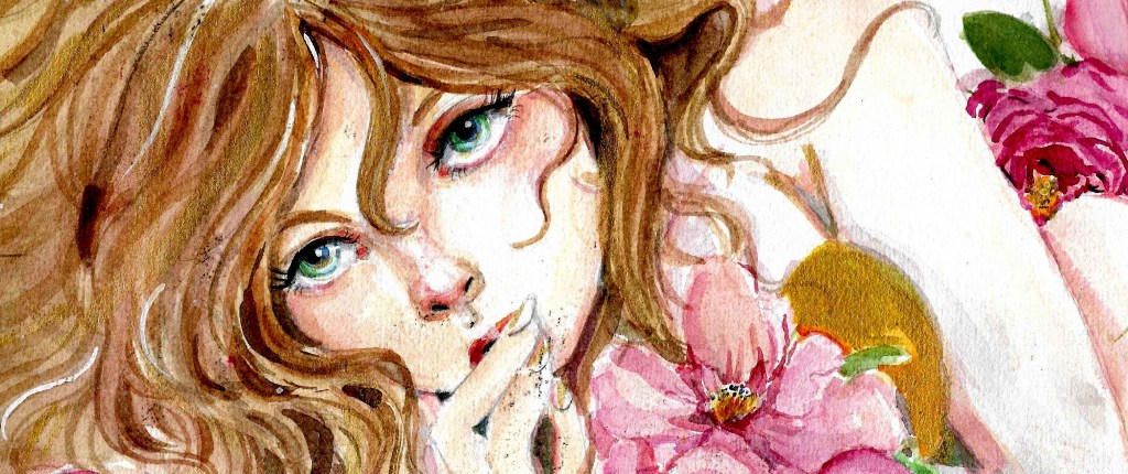 I think I have done this many times, this piece and still I cannot find satisfaction in it. I wonder why. I want her to be an ethereal beauty with roses and flowers on her and to make all that gold stand out. I want her to be a goddess, yet I cannot complete the image in my head and put it into paper. Nevertheless, I tried and it was not a bad attempt.