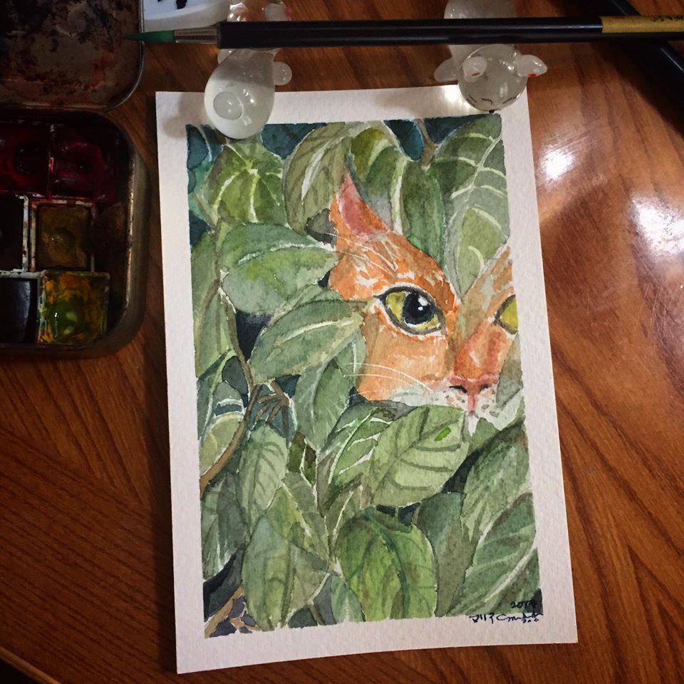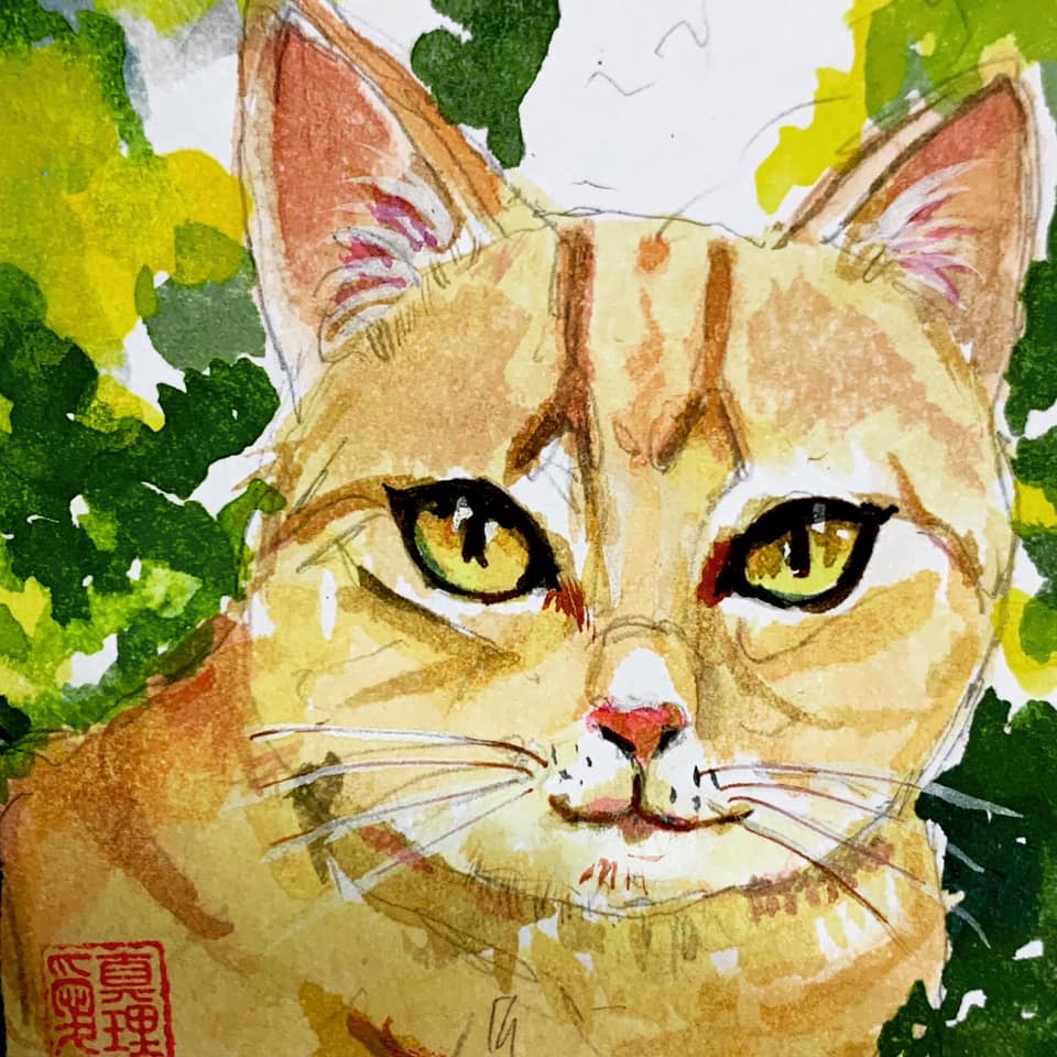Mochi and Portia are cats of a friend, Brian. He lent me their pictures so I can create some nature studies. This led to me painting a lot of cats. I love painting cats. In fact, I have a fictional cat named Toby who has an Instagram it tells about his adventure as a curious cat in my microart journal.